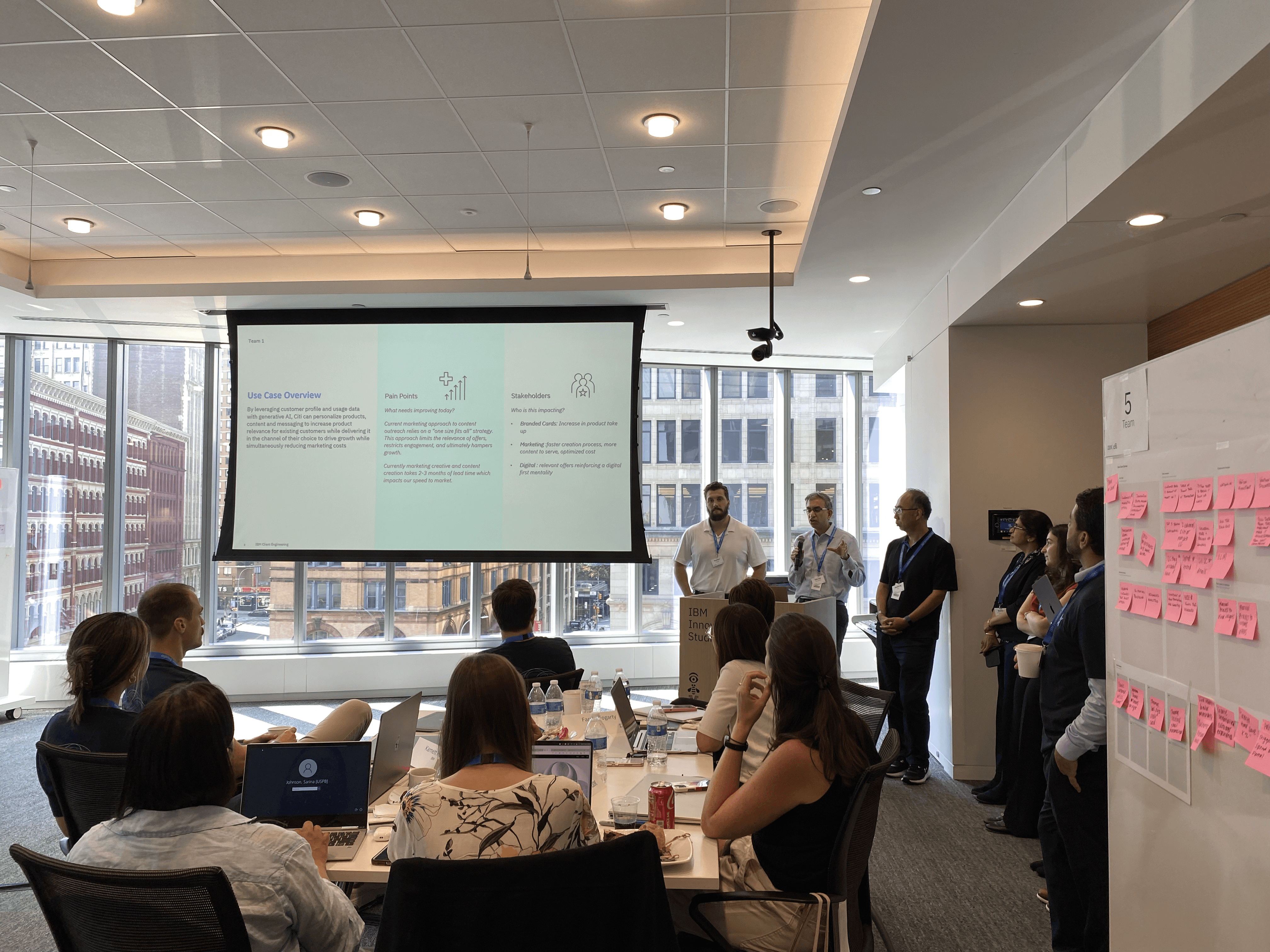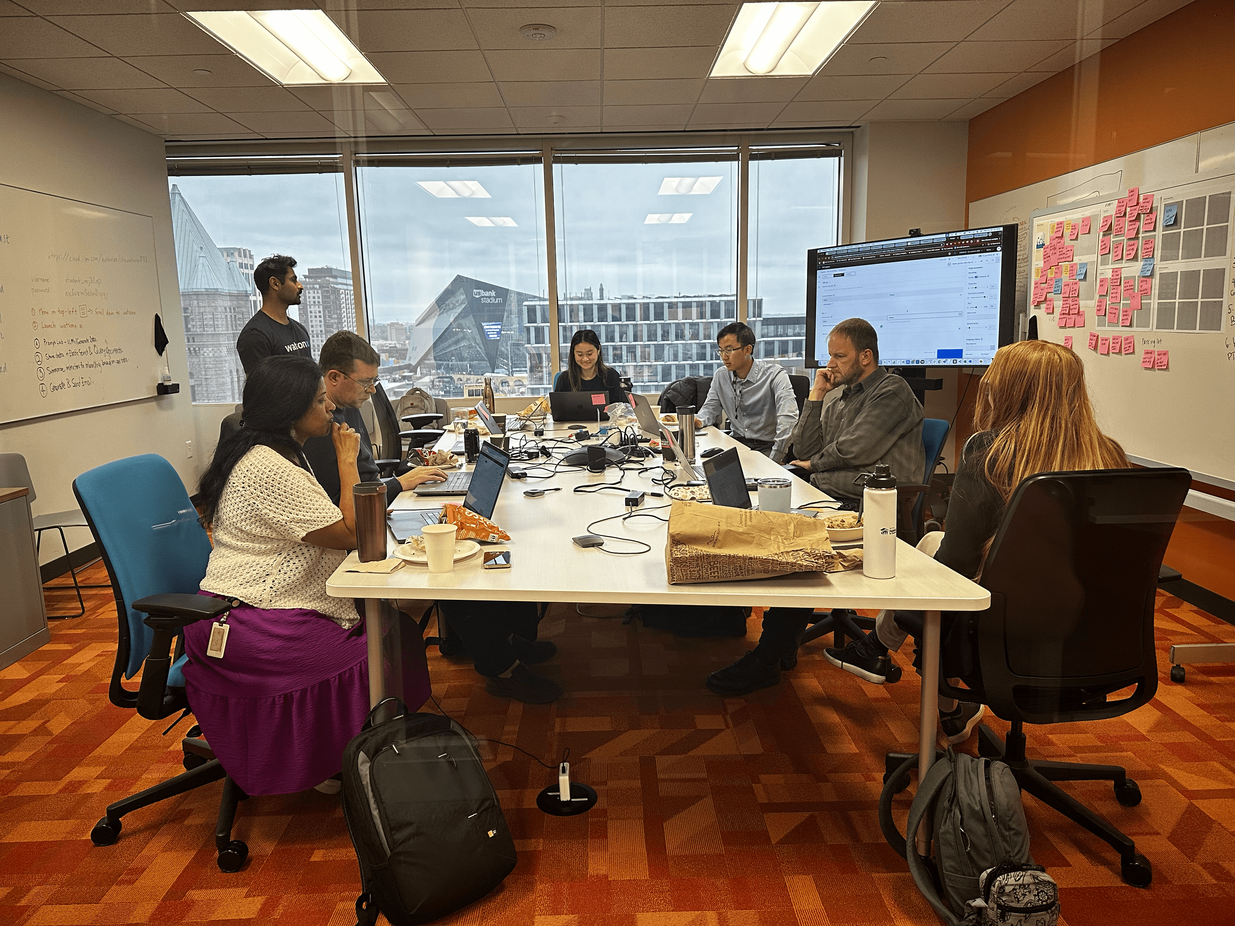 The engagement followed a disciplined flow. Teams began with use case discovery to identify high-value opportunities rooted in real user and business problems. This was followed by a hands-on lab where participants worked directly in real environments to explore watsonx capabilities. Insights from the lab were translated into defined user experiences and business problem statements, culminating in clear, pitch-ready narratives that aligned stakeholders and created momentum toward adoption.